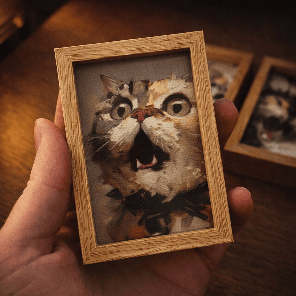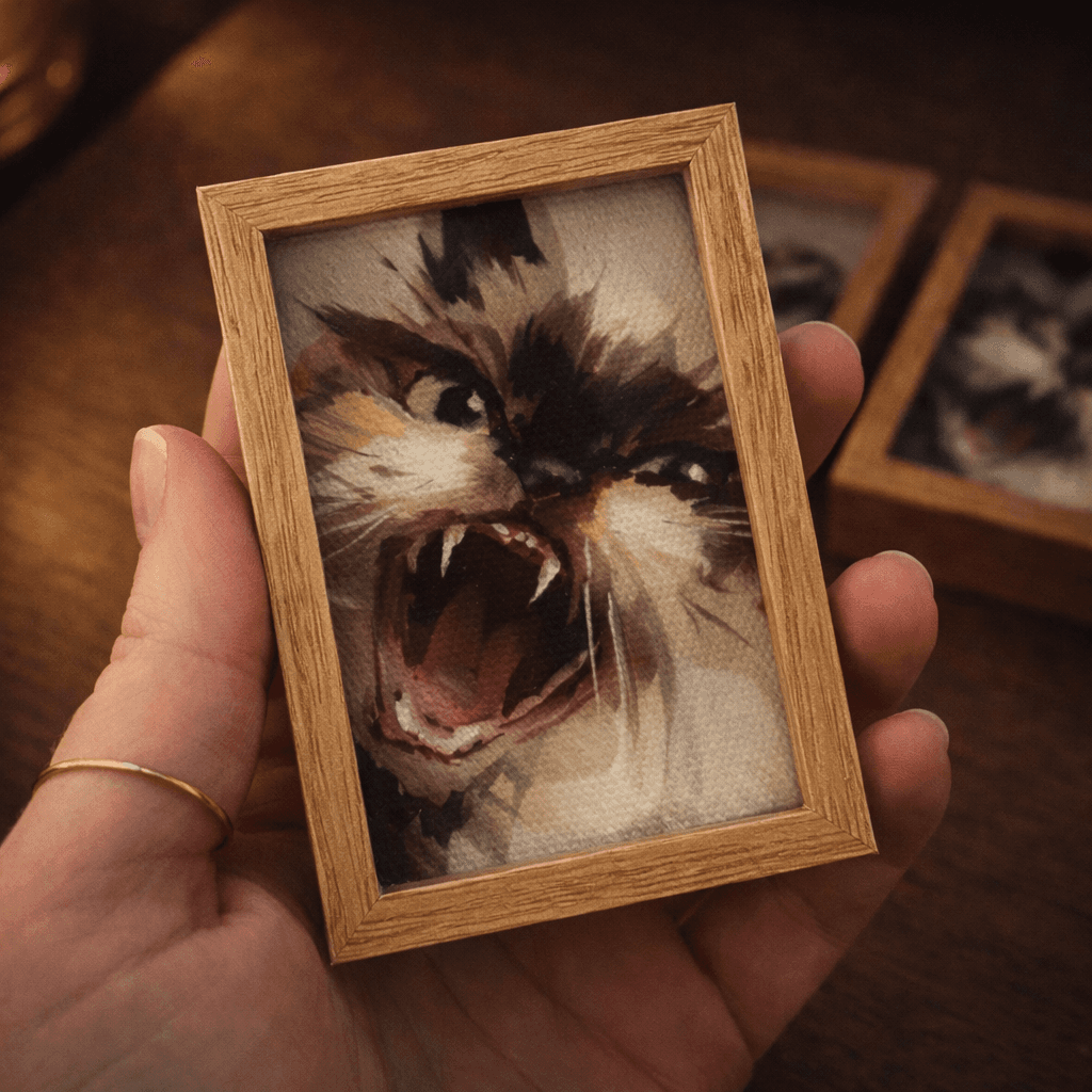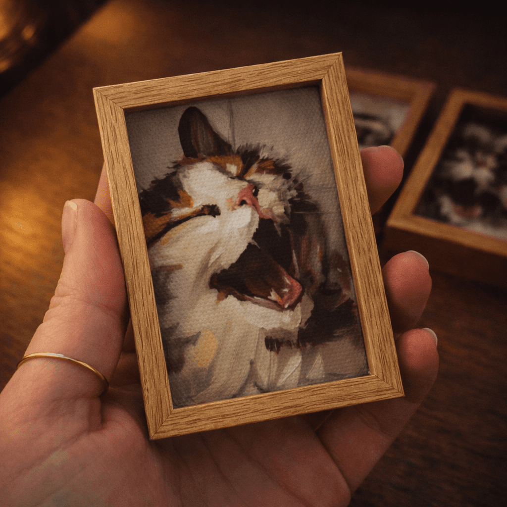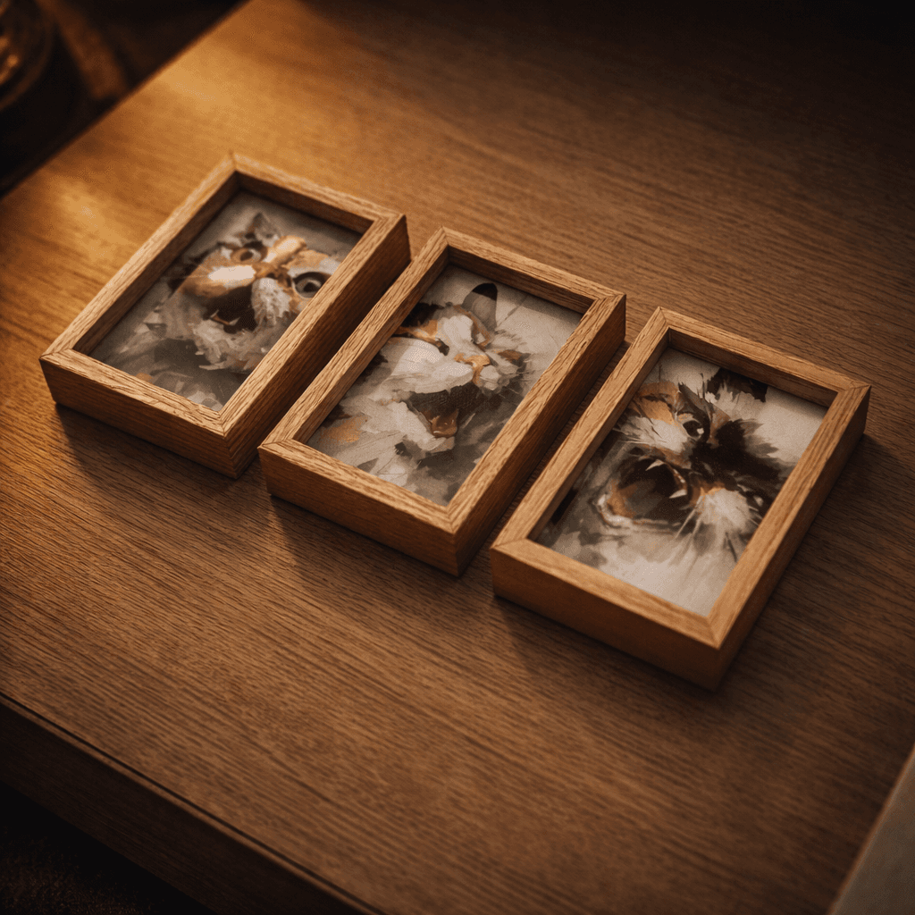 Set von Katzenprints, 7,5 × 5,5 cm, Leinwand, Holzrahmen mit Glas