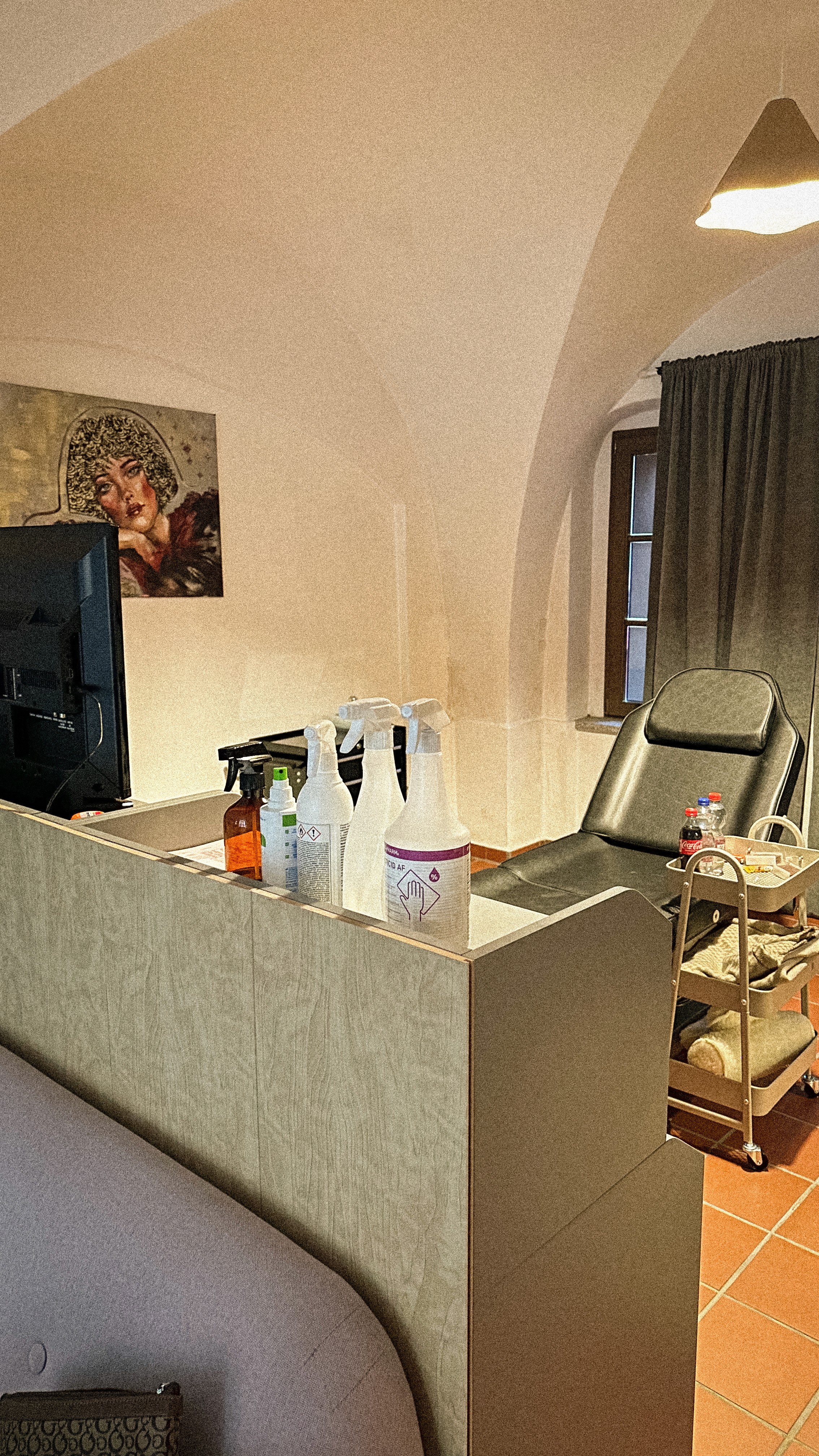 Das Studio ist ruhig, gemütlich und bewusst als Safe Space gestaltet. Es gibt Kaffee, Tee, kleine Snacks, Netflix, Hausschuhe und Decken – alles, damit du dich während der Sitzung entspannen und wohlfühlen kannst.